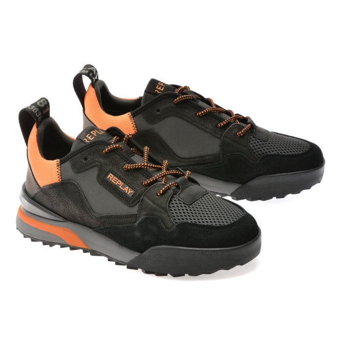 Pantofi sport REPLAY negri, MSG901L, din material textil si piele naturala